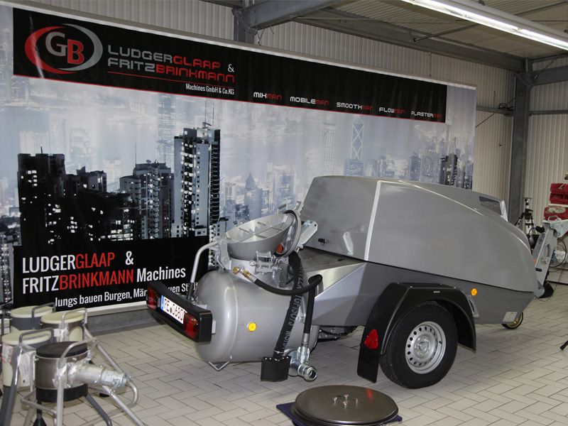 Über die Kompressoren-Instandsetzung ergab sich allmählich eine solide Geschäftsbeziehung zu Unternehmen in unserem heutigen Tätigkeitsfeld. Dieses umfasst derzeit Entwicklung, Verkauf und Reparatur von Estrichmaschinen und Verputzmaschinen samt Zubehör für Stukkateure beziehungsweise Estrichleger. Durch die 1987 getätigte Übernahme einer maroden Firma war ein kleiner, schwindender Kundenstamm dieser für uns neuen Branche vorhanden. Mit überzeugenden Leistungen in der Instandsetzung von Estrichmaschinen konnten wir den Kundenstamm zurückerobern und erheblich erweitern.